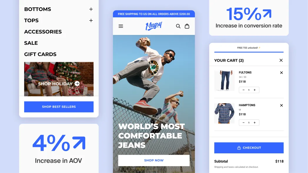 Leave your outdated designs behind. Your new storefront won’t just look good—it will be designed using proven UX patterns that improve conversion rate and average order value.