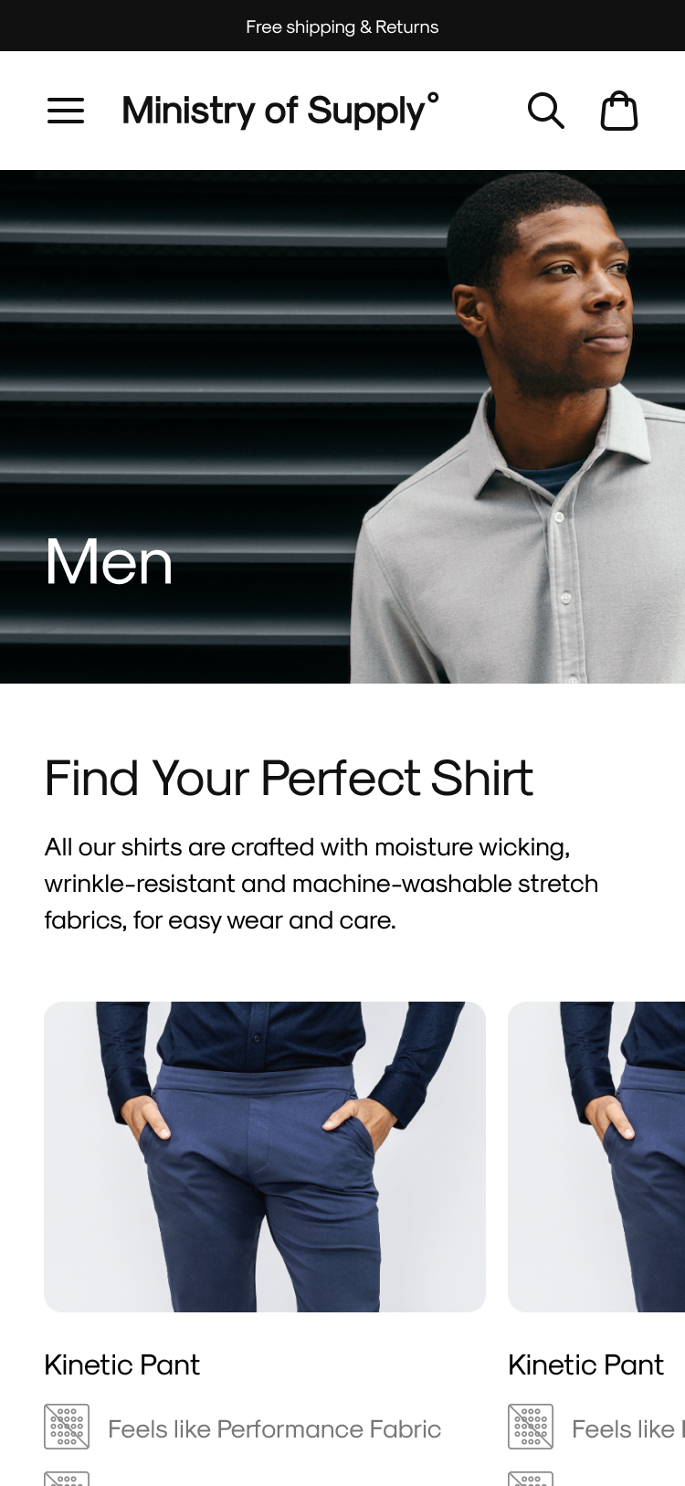Ministry of Supply makes performance professional apparel. The brand has been around for 12-plus years, and over that time their ecommerce setup has gone through just about every major platform shift the industry has seen. Their most recent store was a headless Shopify build run by an outside development agency. It offered control, but it came with locked code, a slow sprint cycle, and a $170,000/year development bill. They moved to Platter to get back to something their own team could actually run.